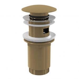 A392-GM-B ДОННИЙ КЛАПАН ДЛЯ УМИВАЛЬНИКА CLICK/CLACK 5/4", ЦІЛЬНОМЕТАЛІЧНИЙ З ПЕРЕЛИВОМ І ВЕЛИКОЮ ЗАГЛУШКОЮ – GOLD-шліфований мат